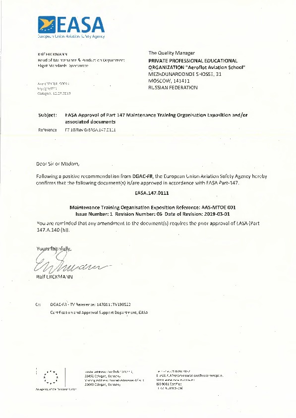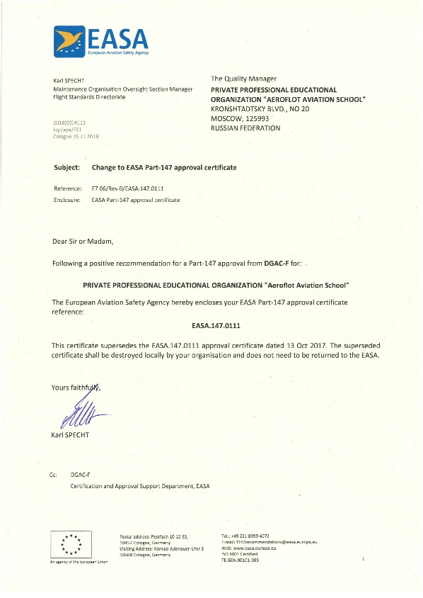 Частное профессиональное образовательное учреждение «Авиационная школа Аэрофлота»