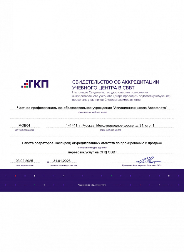 | 27.04.2026 | Первоначальная подготовка бортпроводников на Airbus-319/320/321 в г. Москва и г. Санкт-Петербург | 08:15 | Новый тренажерный комплекс (НТК) | Подробнее |